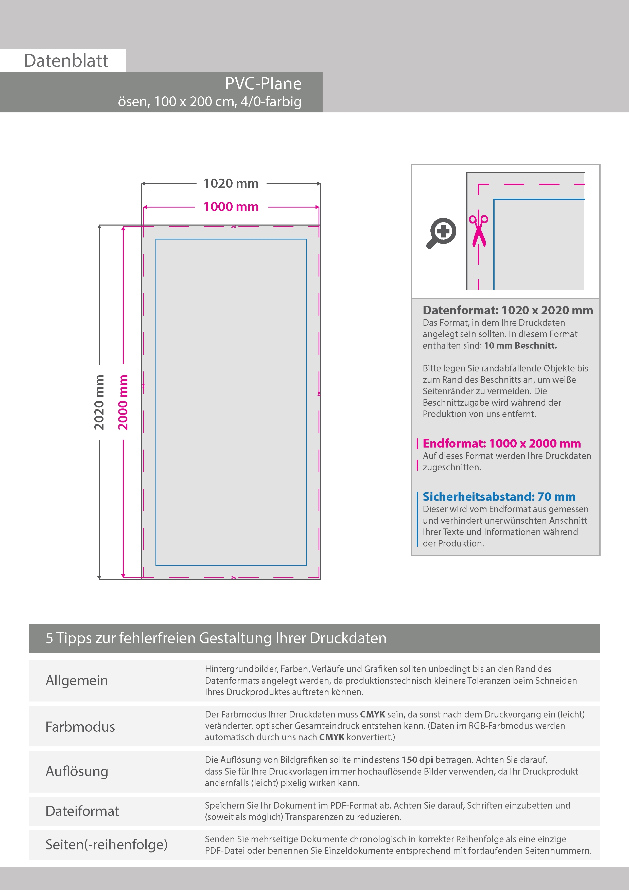 Hochwertige PVC-Plane 100 x 200 cm, 4/0-farbig bedruckt, Ösen im Abstand von 50 cm rundum