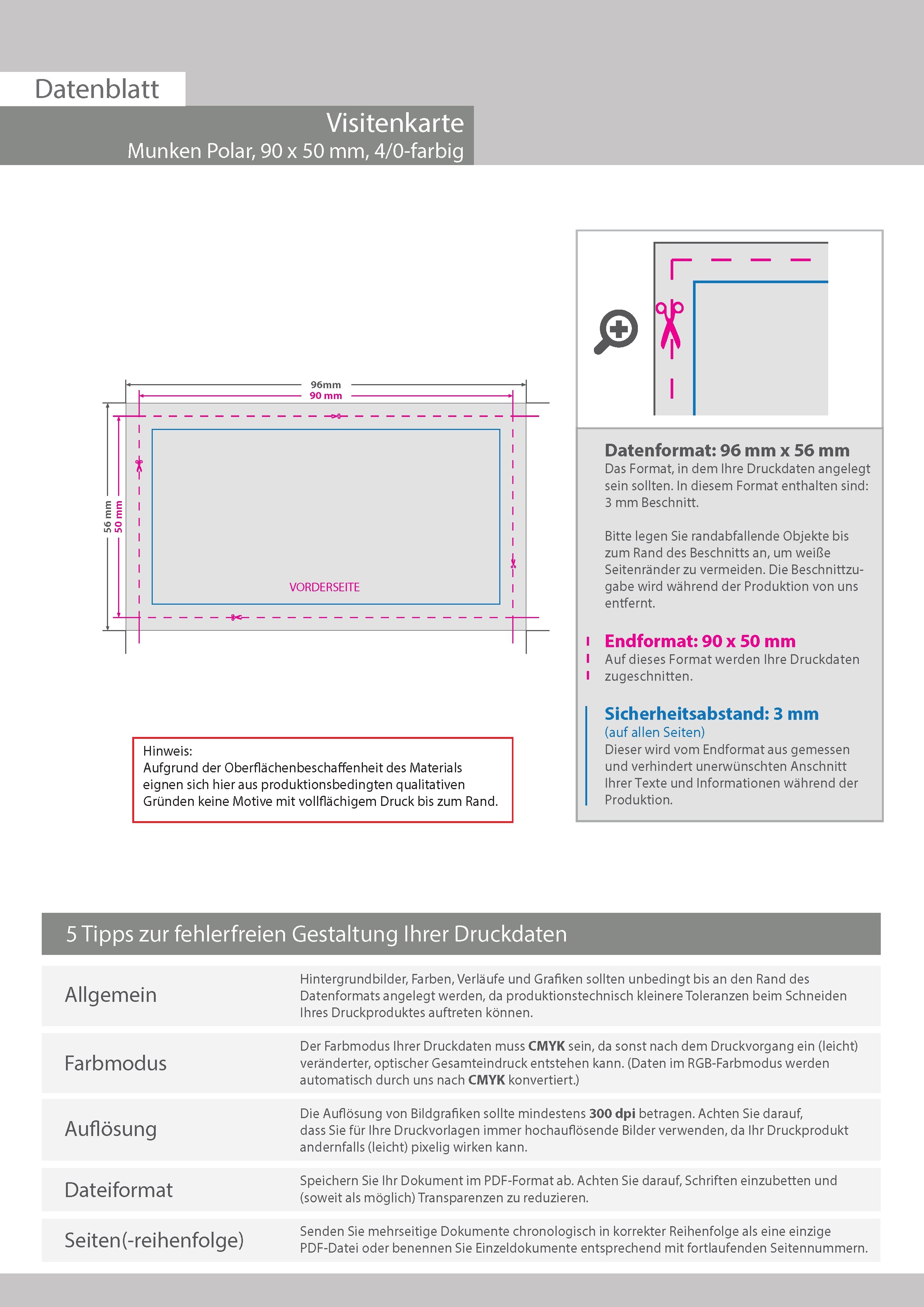Visitenkarten quer 4/0 farbig 90 x 50 mm (einseitiger Druck), Munken Polar