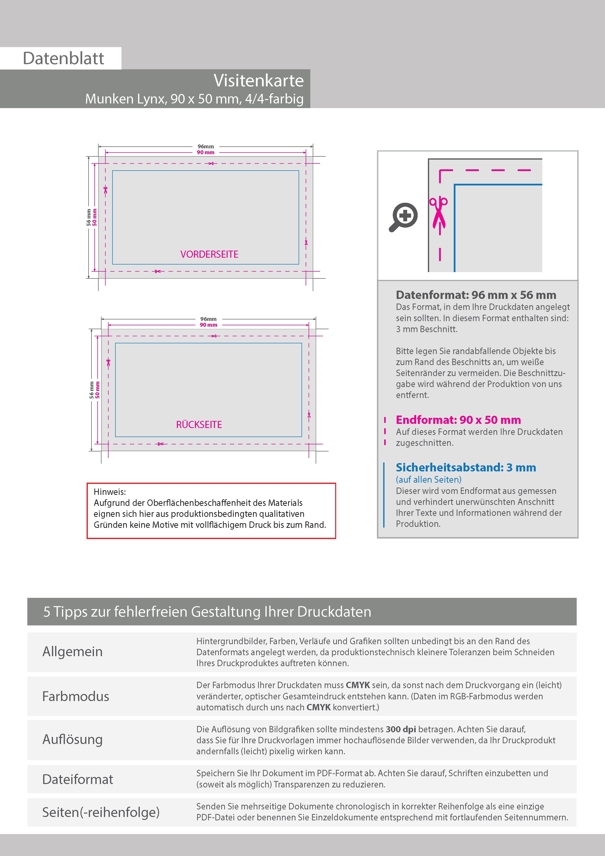 Visitenkarten quer 4/4 farbig 90 x 50 mm (beidseitiger Druck), Munken Polar