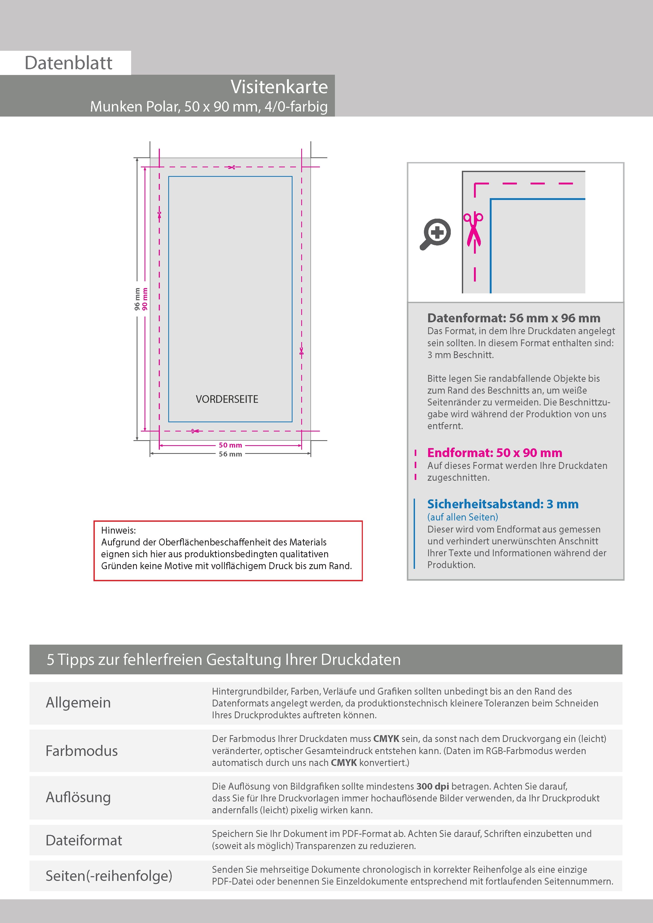 Visitenkarten hoch 4/0 farbig 50 x 90 mm (einseitiger Druck), Munken Polar