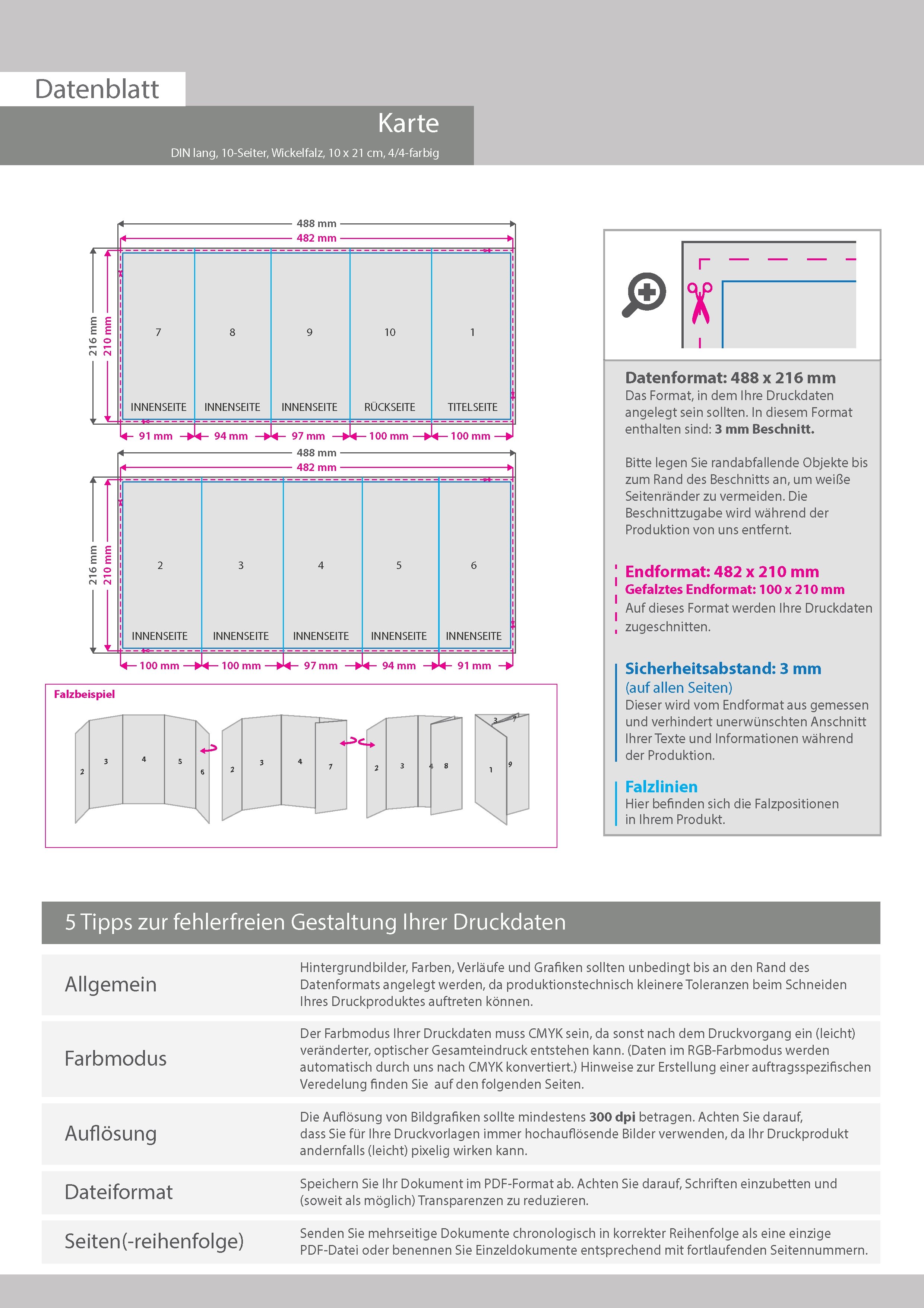 Einladungskarte, gefalzt auf DIN lang, vertikaler Wickelfalz, 10-seitig