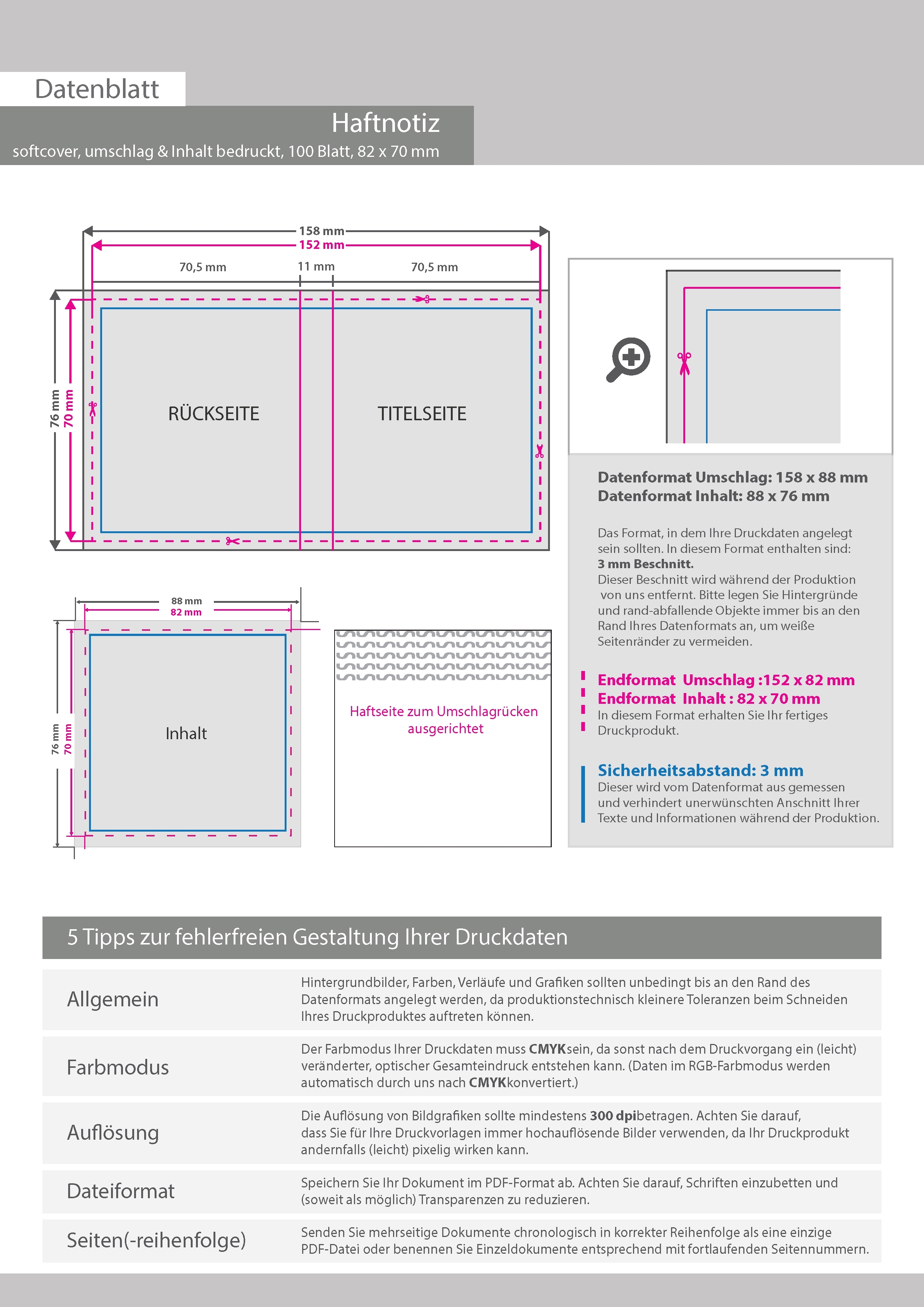 Haftnotizen 82 x 70 mm, 100 Blatt mit bedrucktem Inhalt und Kartonumschlag