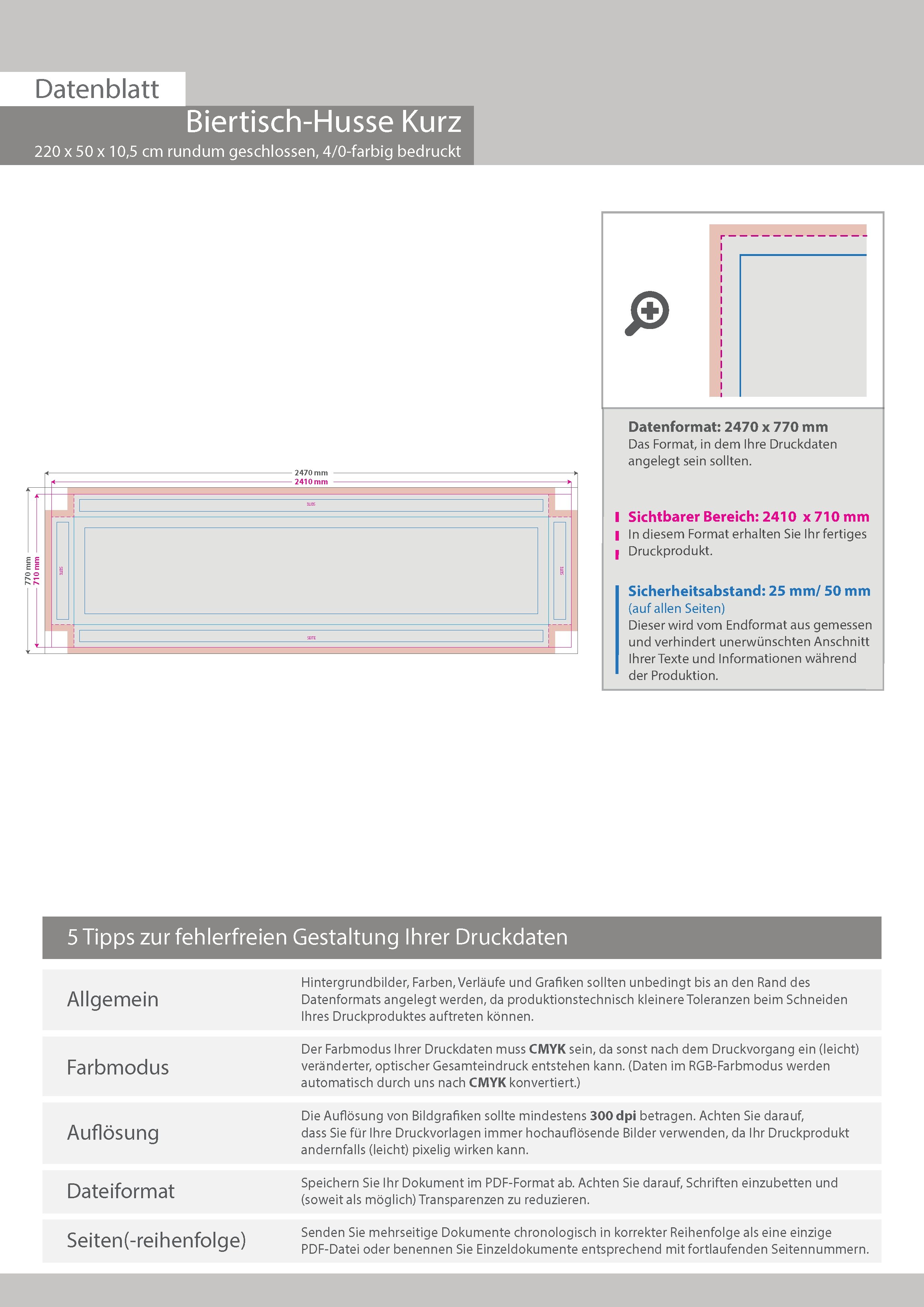 Biertisch-Husse KURZ 220 x 50 x 10,5 cm rundum geschlossen, 4/0-farbig bedruckt