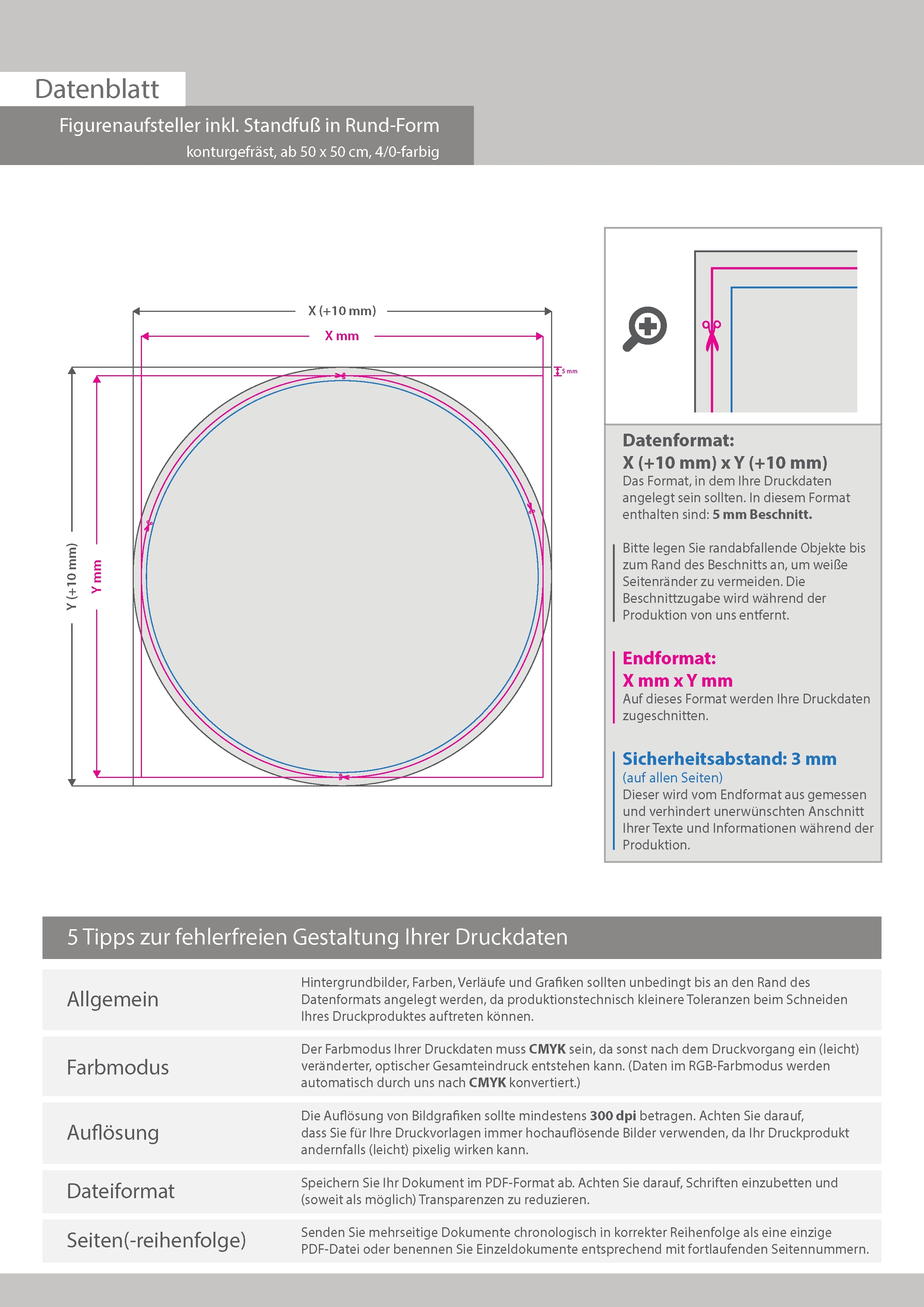 Figurenaufsteller inkl. Standfuß rund (kreisrund konturgefräst), einseitig 4/0-farbig bedruckt