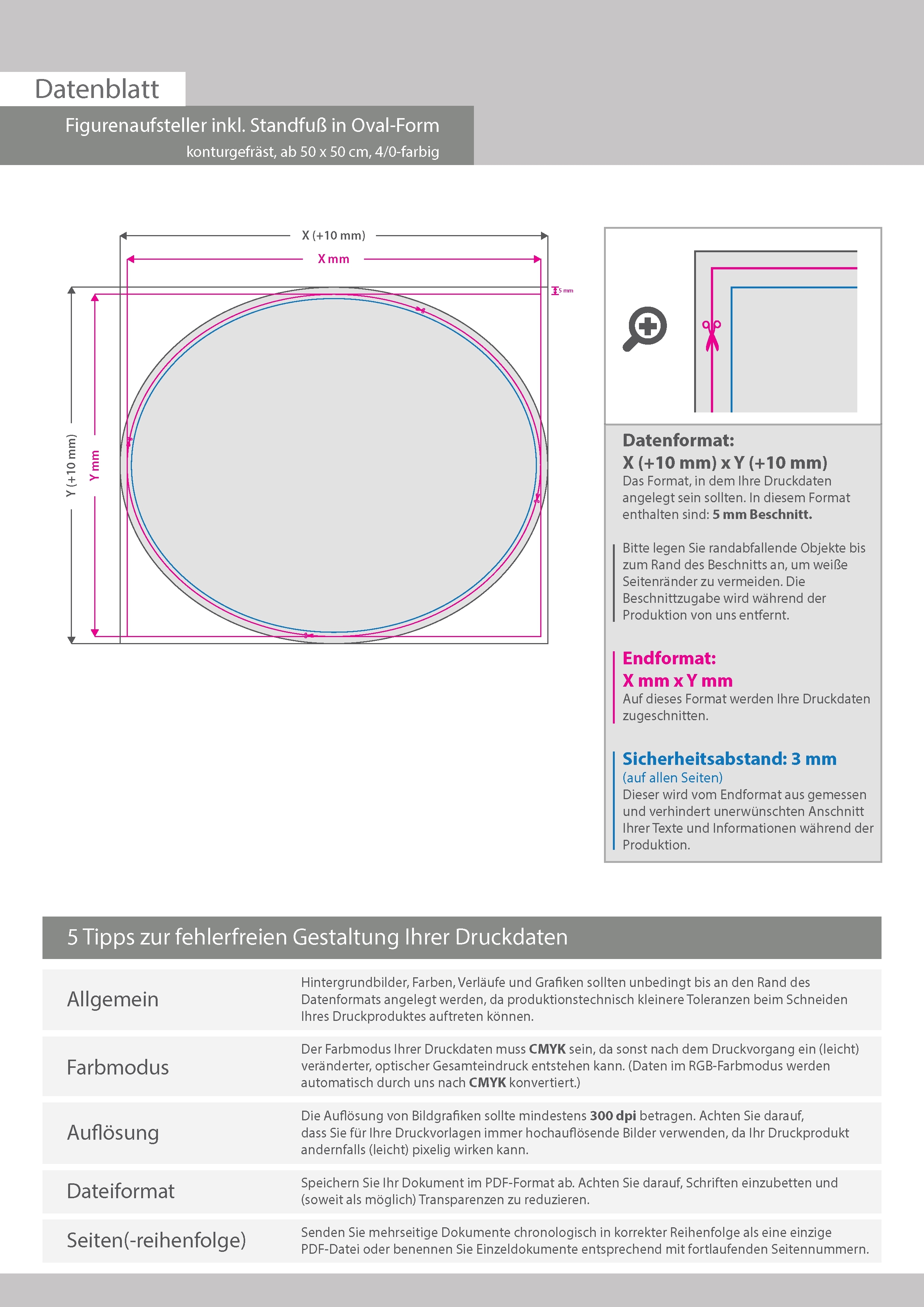 Figurenaufsteller inkl. Standfuß oval (oval konturgefräst), einseitig 4/0-farbig bedruckt