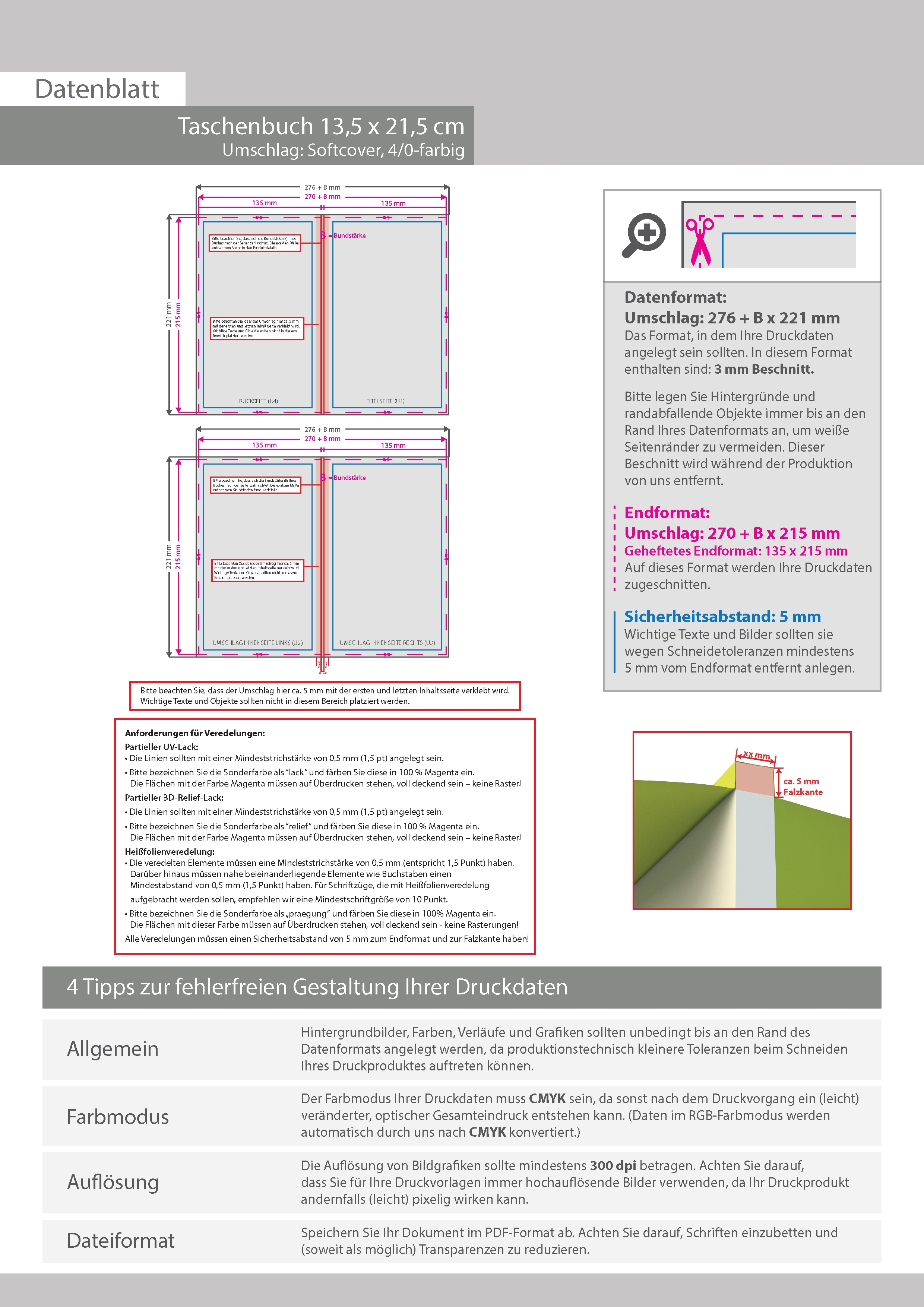 Taschenbuch, 13,5 x 21,5 cm hoch, Umschlag 4/0-farbig CMYK, Inhalt 448 Seiten 1/1-farbig Schwarz